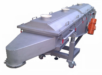 當(dāng)縱向安裝在篩體上的兩臺振動電機(jī)做相對運(yùn)轉(zhuǎn)時,其產(chǎn)生在橫向的激振力由于電機(jī)的相對運(yùn)轉(zhuǎn)而相互抵消,其縱向激振力通過傳振體傳遞到整個篩箱上,而使篩面振動,從而使篩面上的物料受其激振力而在篩網(wǎng)面上向出料品方向跳躍運(yùn)動,小于篩孔的物料通過篩孔而落到下層,經(jīng)連續(xù)跳躍后從出料口流出,由于篩分過程合理,物料經(jīng)振動篩分級后,可取得幾種不同粒度的物料,完成物料的分級作業(yè)。